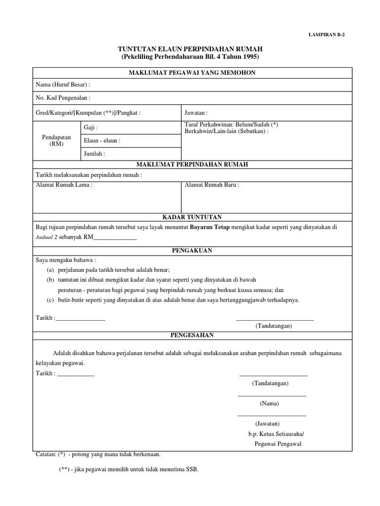 Borang Permohonan Tuntutan Elaun Pindah Rumah Jabatan
