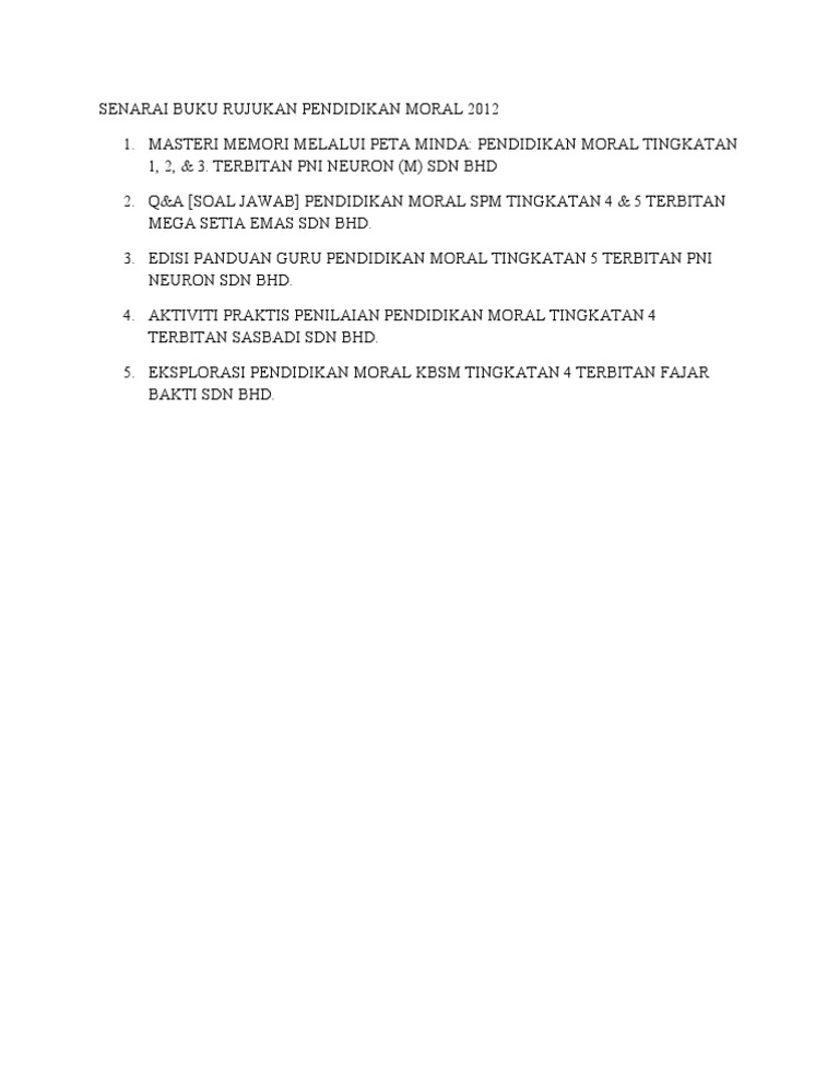 Senarai Buku Rujukan Pendidikan Moral 2012