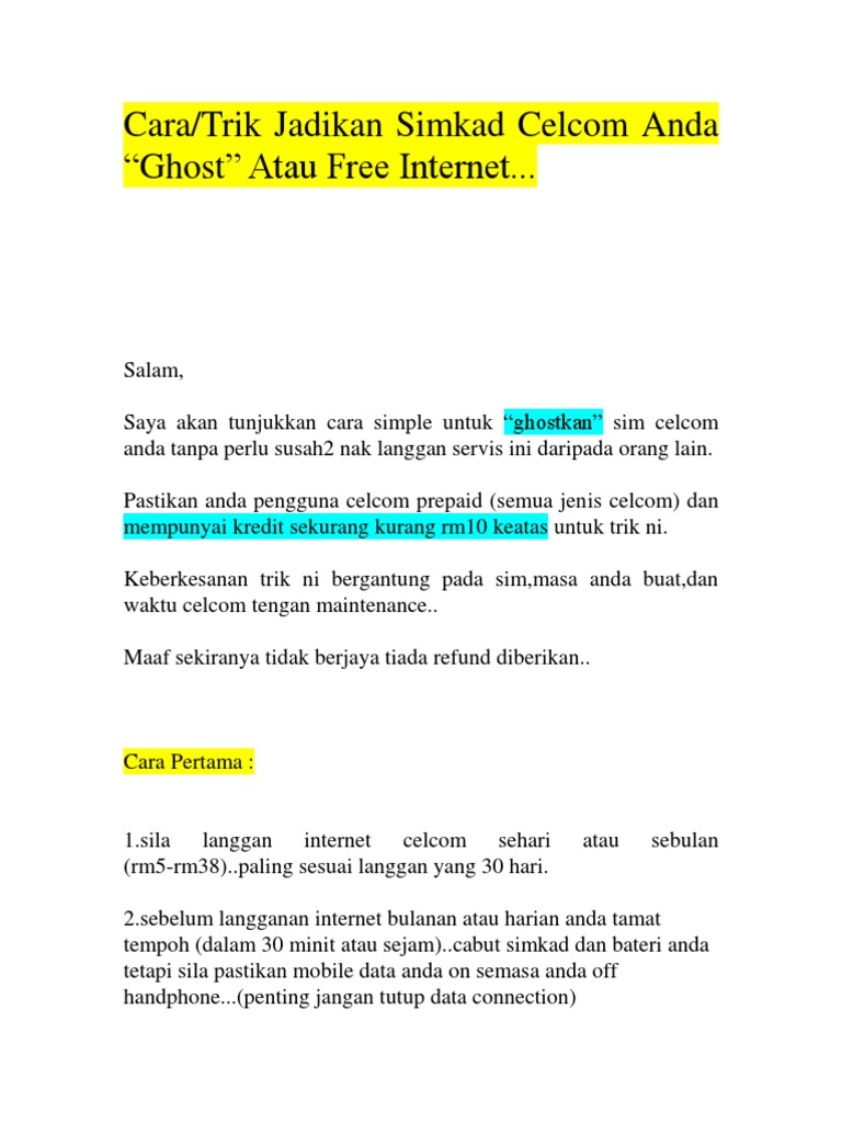 Cara Ghost Sim Celcom