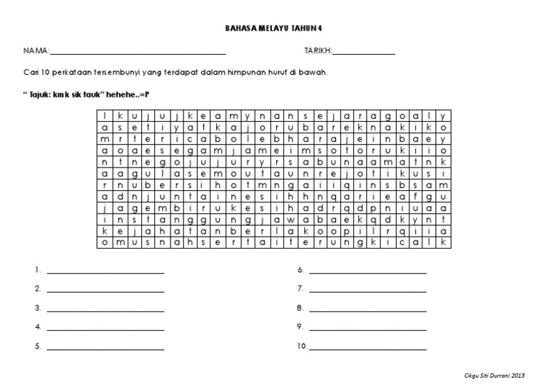 Mencari Perkataan Yang Tersembunyi Nota Latihan Upsr Pt3 Spm Facebook