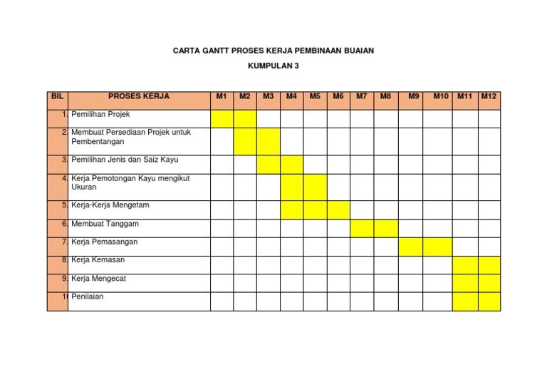 Carta Gantt Proses Kerja Pembinaan Buaian