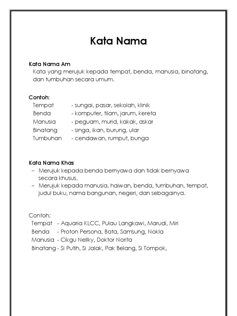 Contoh Kata Nama Am Dan Kata Nama Khas Materi Pelajaran 1