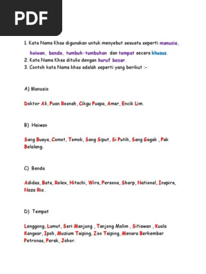 Contoh Kata Nama Khas Materi Pelajaran 1