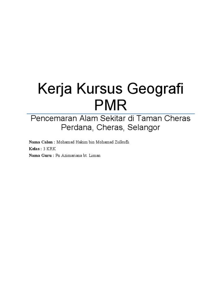 Contoh Kerja Lapangan Geografi Tingkatan 3 Pencemaran Alam Sekitar