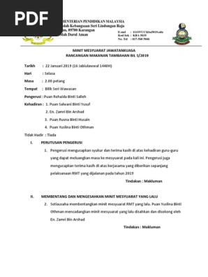 Doc Contoh Format Minit Mesyuarat Wawa Wawa Academia Edu