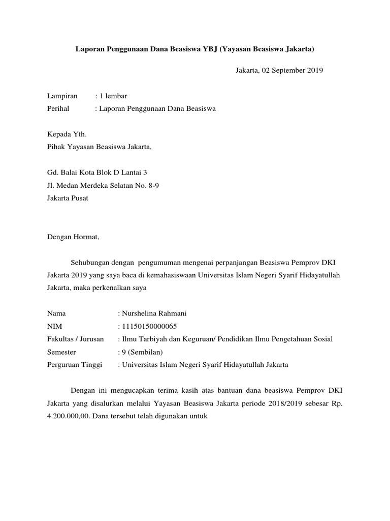 Surat Permohonan Bantuan Dana Pendidikan