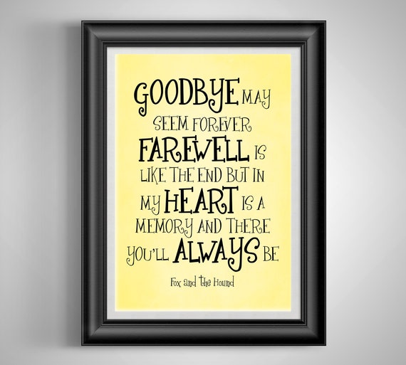 Quote Canvas Disney Fox And The Hound Goodbye May Seem Forever Farewell Is Like The End But In My Heart S A M Goodbye Quotes Farewell Quotes Goodbye Gifts
