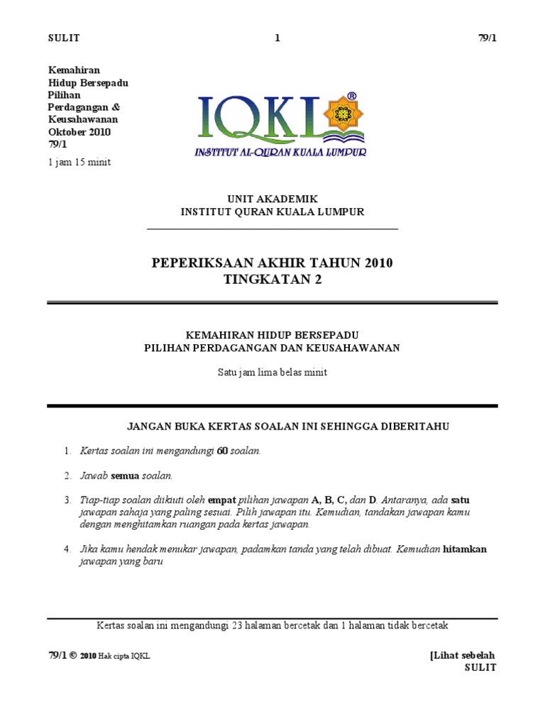 Kemahiran Hidup Pd Perdagangan Dan Keusahawanan Tingkatan 2 Pat 2011 Perak