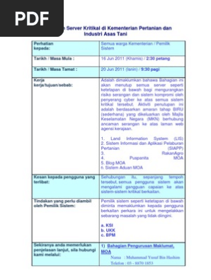 Penutupan Server Kritikal Di Kementerian Pertanian Dan Industri Asas Tani