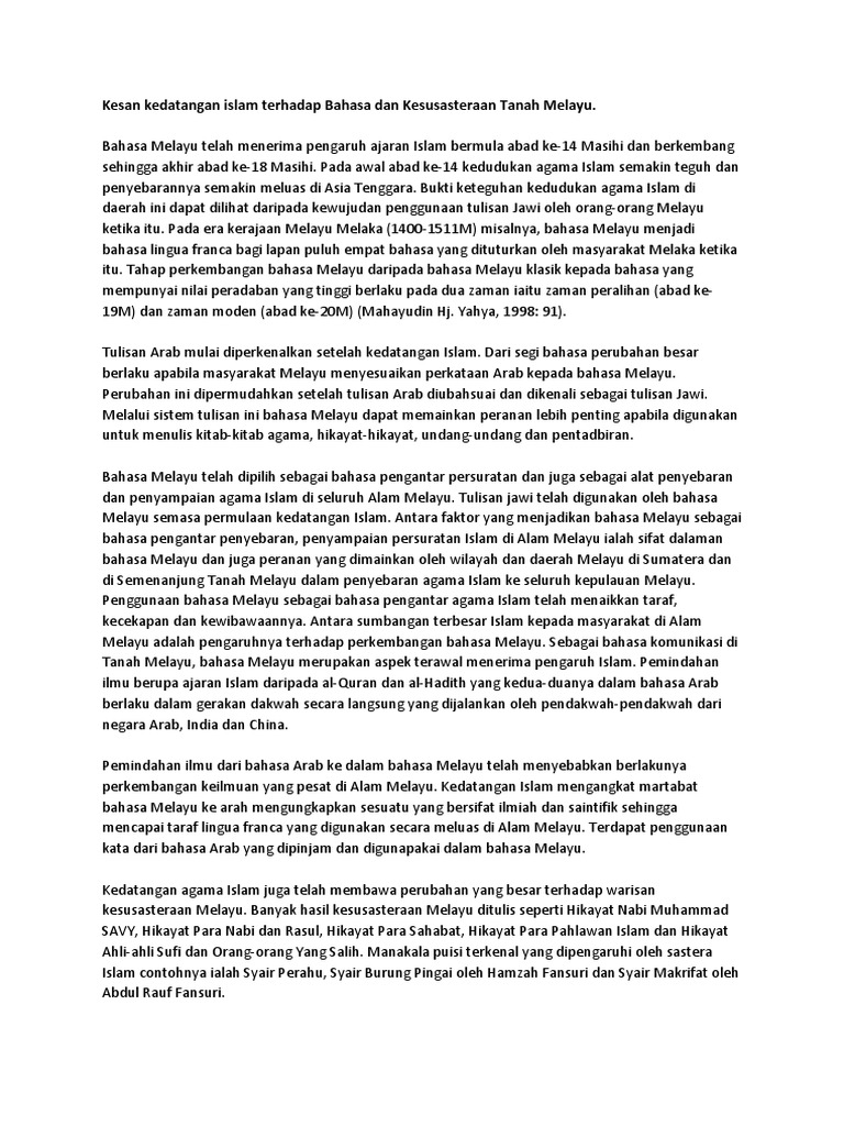 Kesan Kedatangan Islam Terhadap Bahasa Dan Kesusasteraan Tanah Melayu