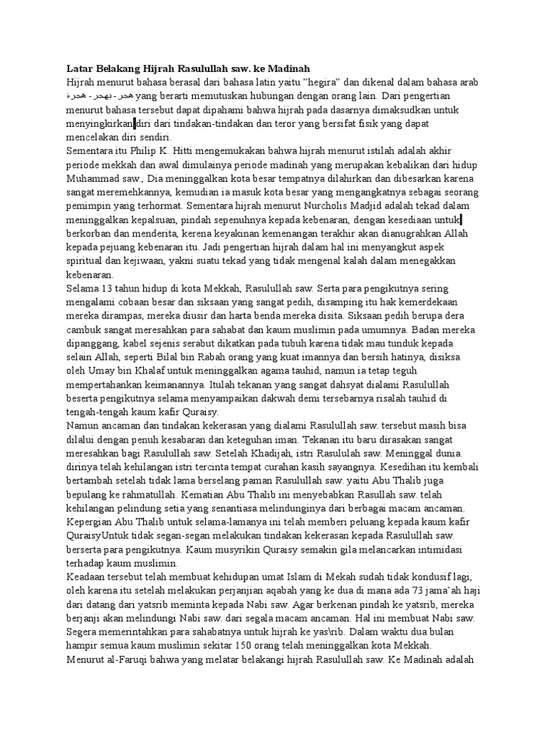 Hijrah Nabi Muhammad Saw Perkembangan Islam Di Madinah Dan Piagam Madinah Kumpulan Makalah