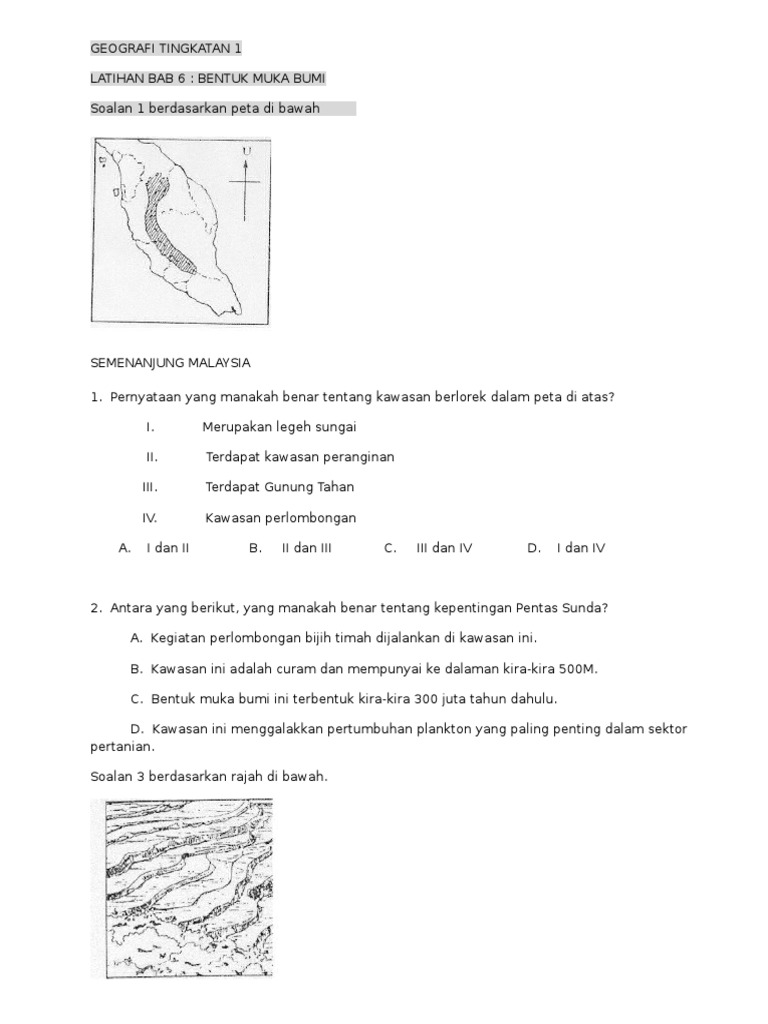 Bentuk muka bumi soalan 1 berdasarkan peta di bawah. Bentuk muka bumi bentuk muka bumi. 1 geografi 1 2 3 atau tingkatan 2 klik bab 1. Skala jarak bab 4.