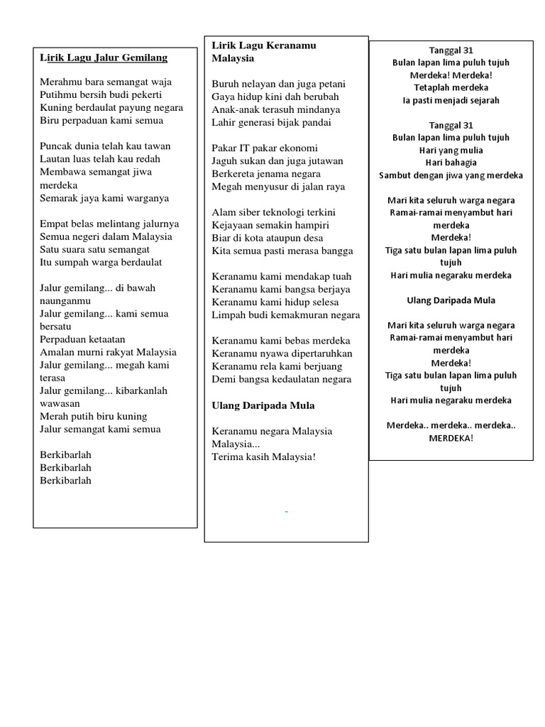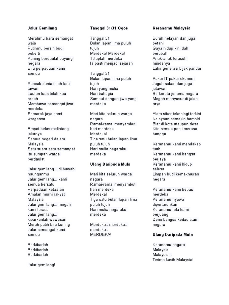 Lirik Lagu Hari Merdeka Malaysia Jalan Permata 1