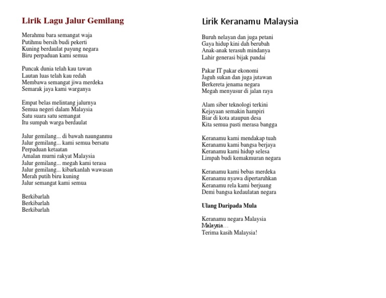 Lirik Lagu Jalur Gemilang With Lyrics Mp4 Youtube