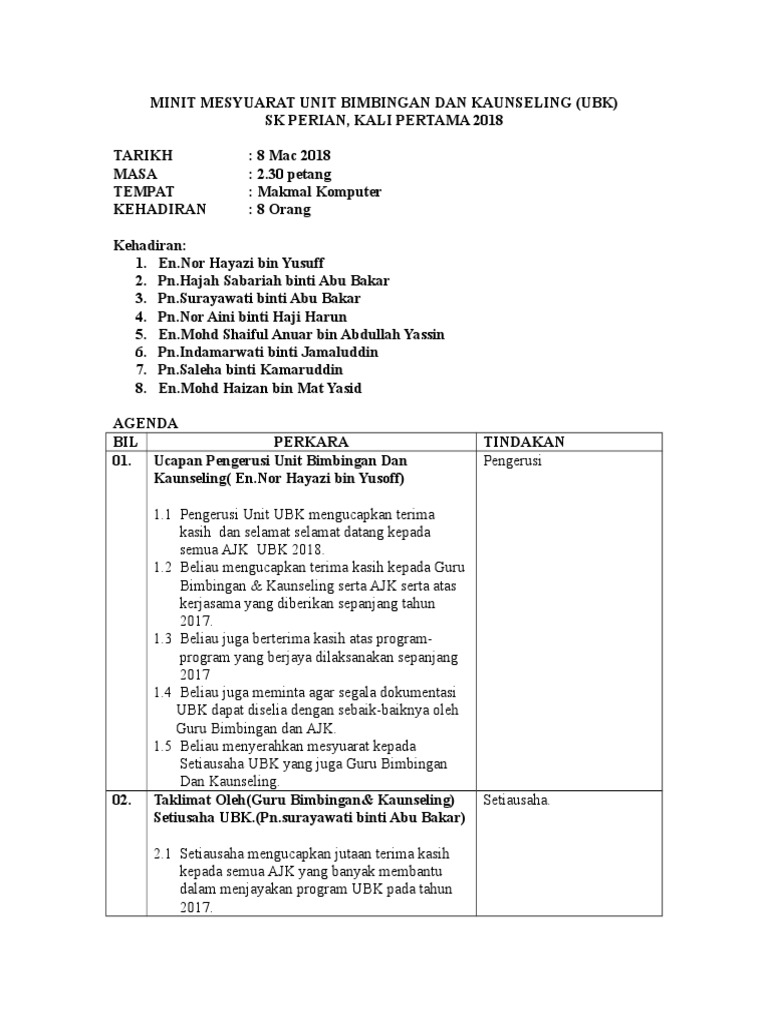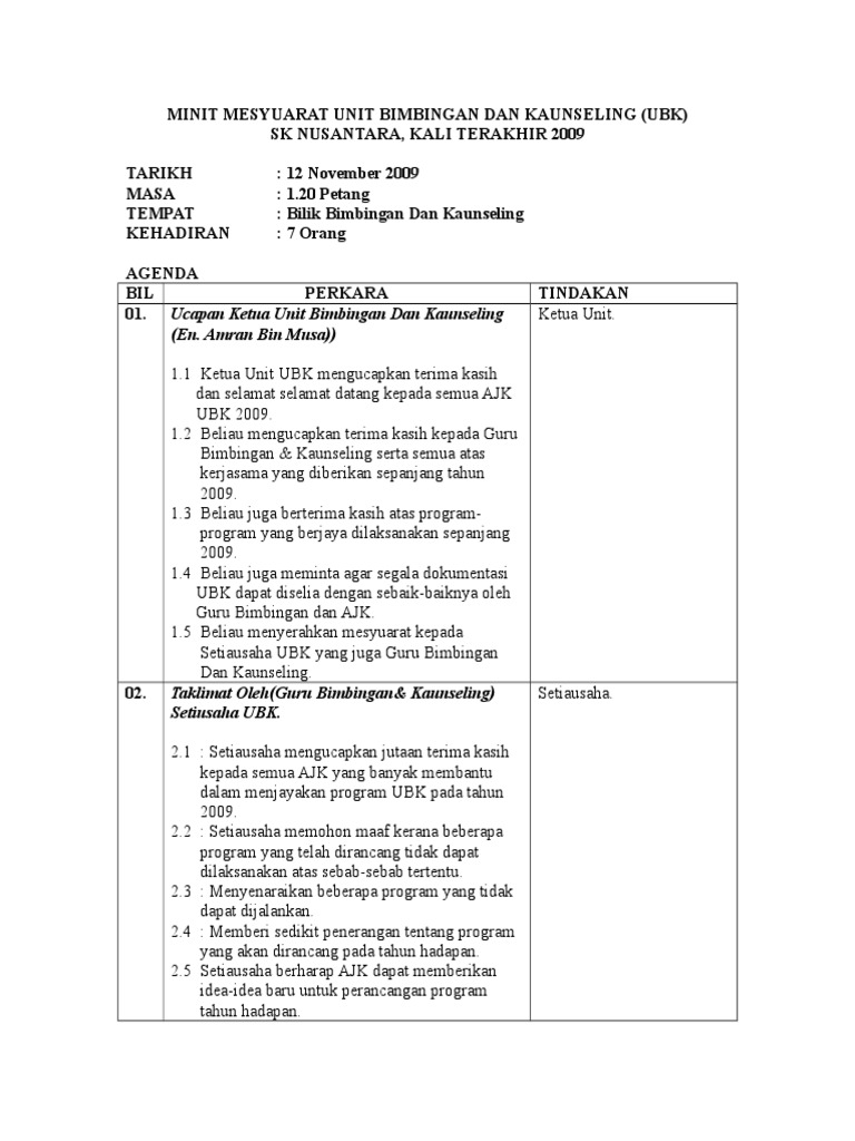 61579172 Minit Mesyuarat Unit Bimbingan Dan Kaunseling Doc