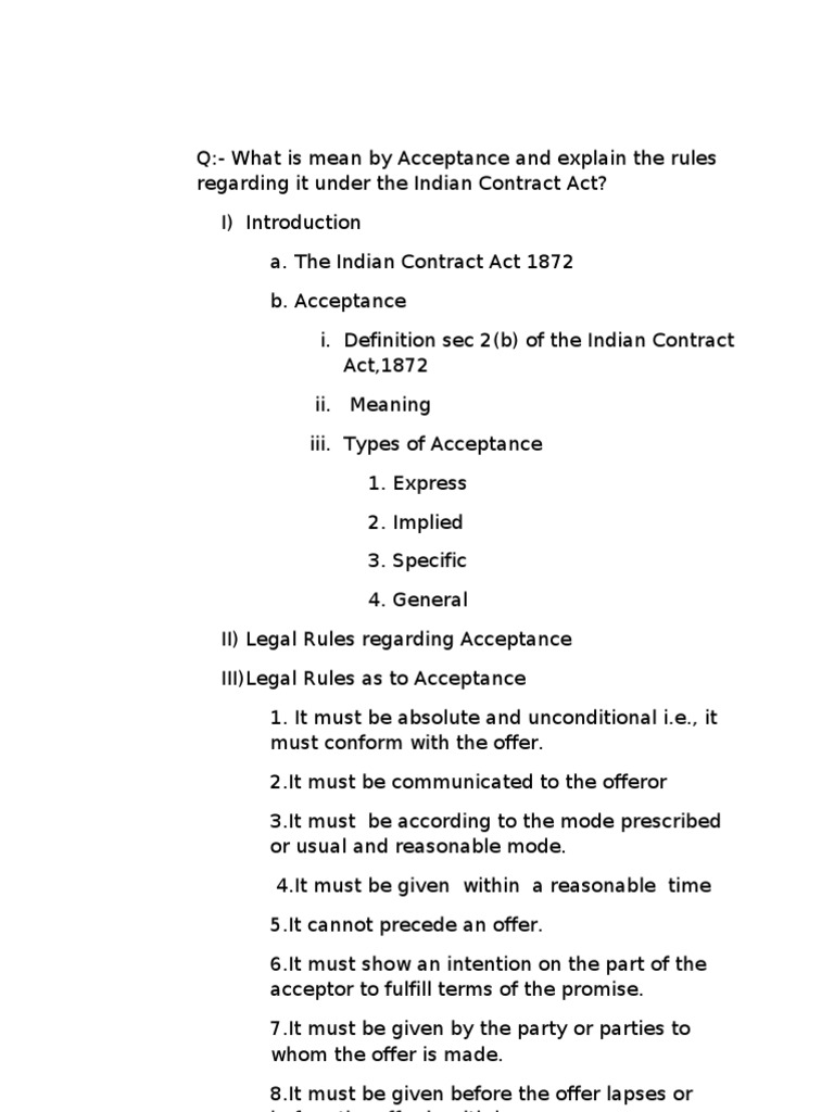 What Is Mean By Acceptance And Explain The Rules Regarding It Under The Indian Contract Act