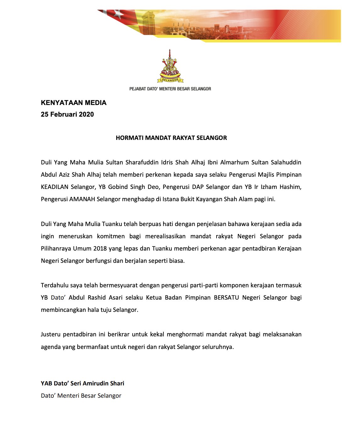 Themalaysianinsight On Twitter Just In Selangor Mb Amirudinshari Said The State Government Will Continue To Respect The Mandate Of The People