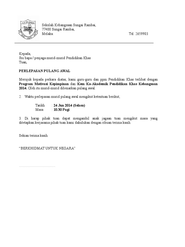 Contoh Surat Makluman Pbs Kepada Ibu Bapa