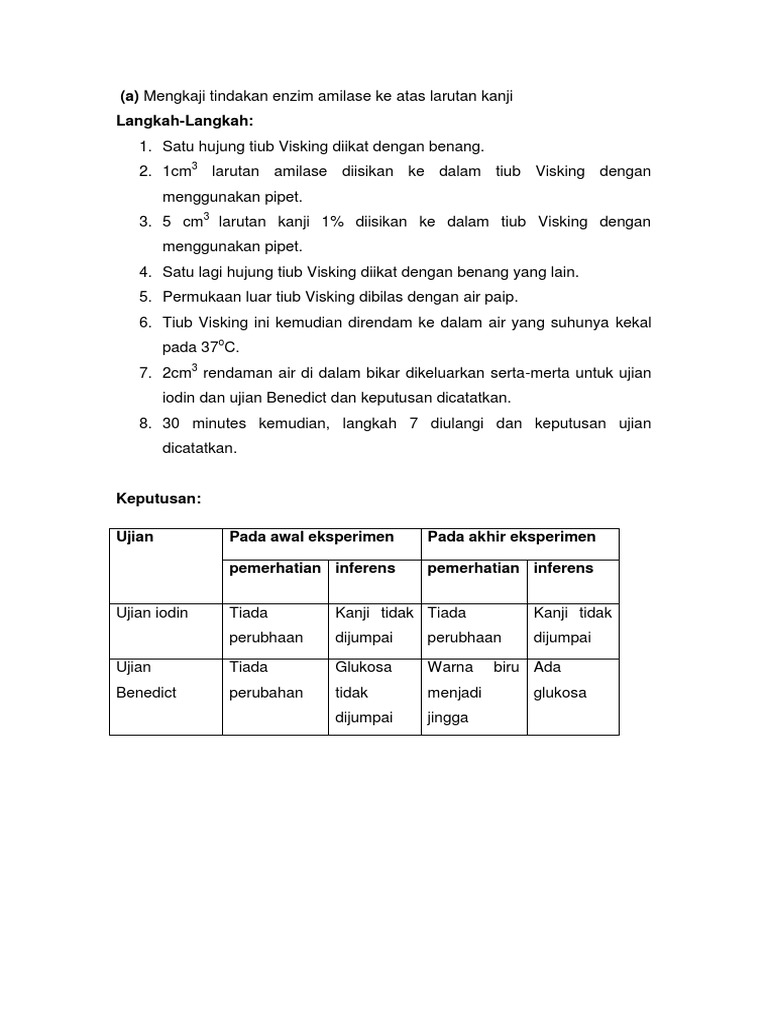 Mengkaji Tindakan Enzim Amilase Ke Atas Larutan Kanji