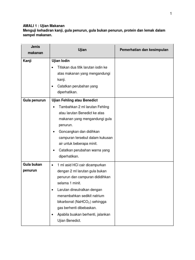 Eksperimen Ujian Makanan Docx Document