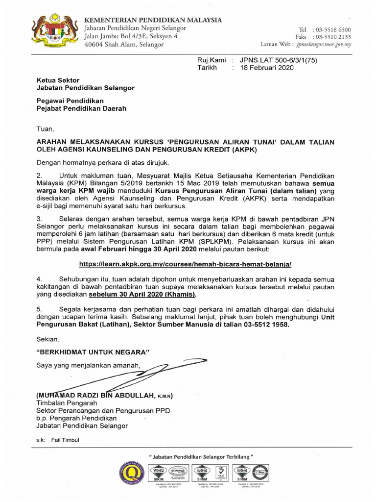 Arahan Melaksanakan Kursus Dalam Talian Akpk