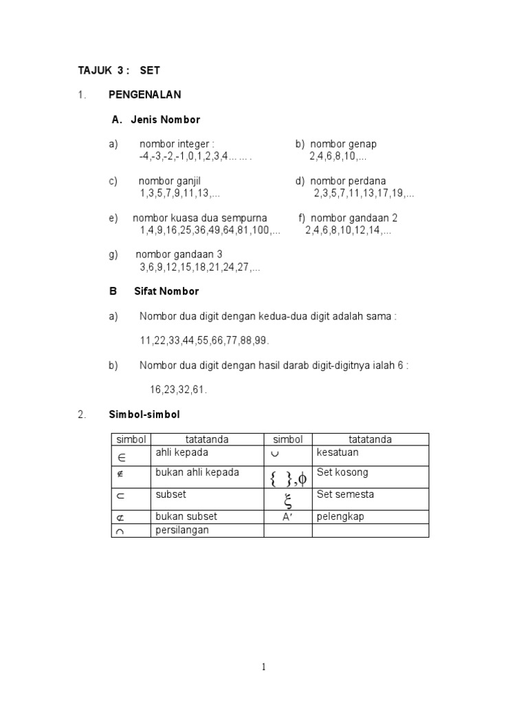 Pengenalan Set Tingkatan 1
