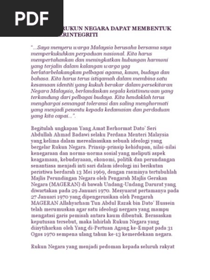 Peranan Rukun Negara Dapat Membentuk Warga Berintegriti