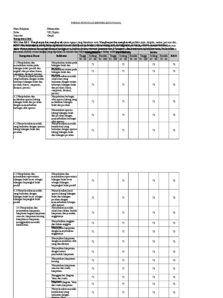 Kkm Mtk Kls 7 K13 Revisi 2017
