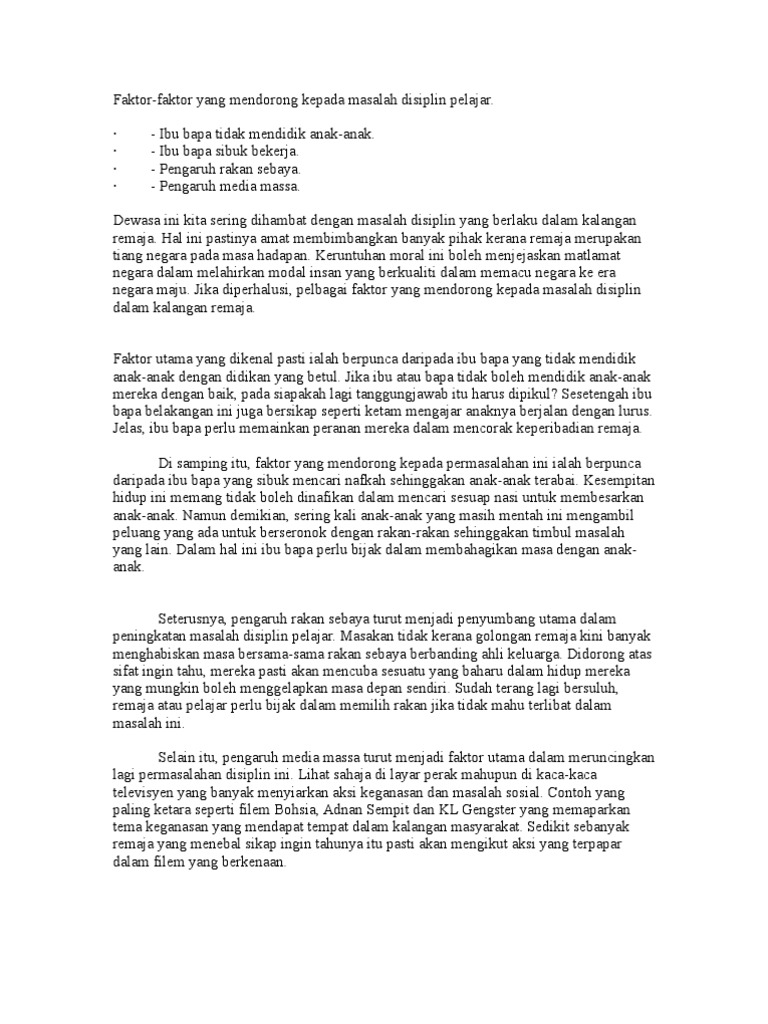 Contoh Karangan Masalah Disiplin Pelajar Rommy Car