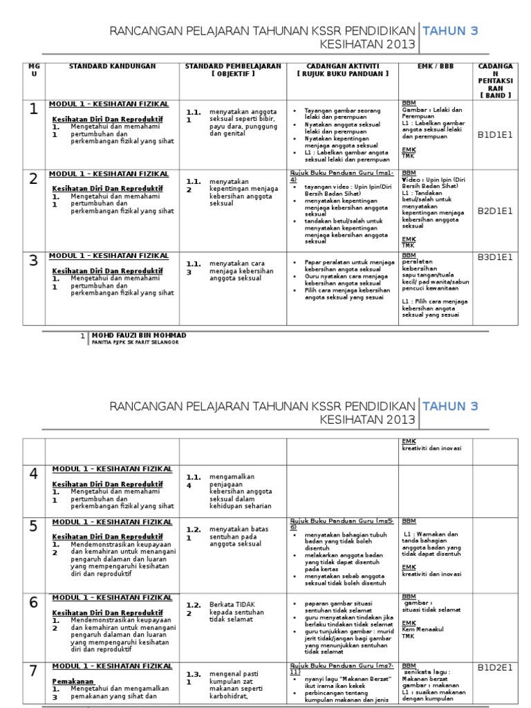 Doc Rpt Tahun 1 Kssr Rpt Pendidikan Kesihatan Sk Tahun 1 Sistem Guru Online Academia Edu