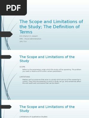 Scope And Delimitation Of The Study Sample Thesis Proposal