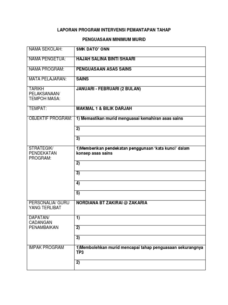 Templat Pelaporan Gabungan Tahun 1 Kssr Semakan Sumber Pendidikan