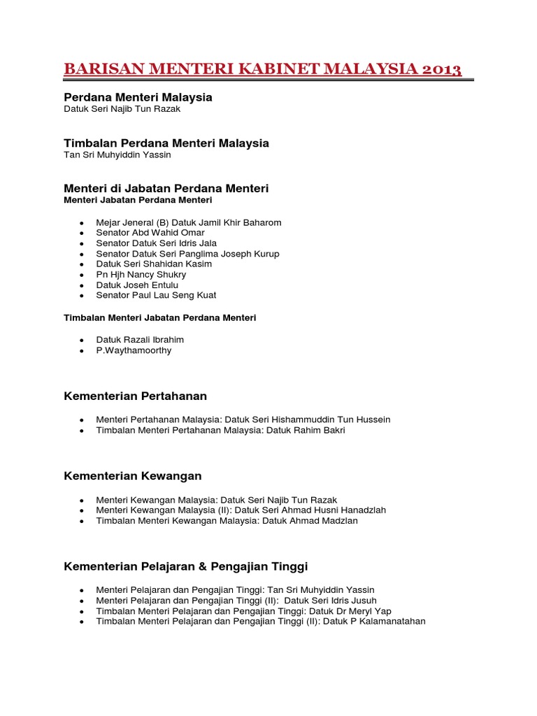 Daftar Menteri Malaysia Di Kabinet Perdana Menteri Muhyiddin Yassin