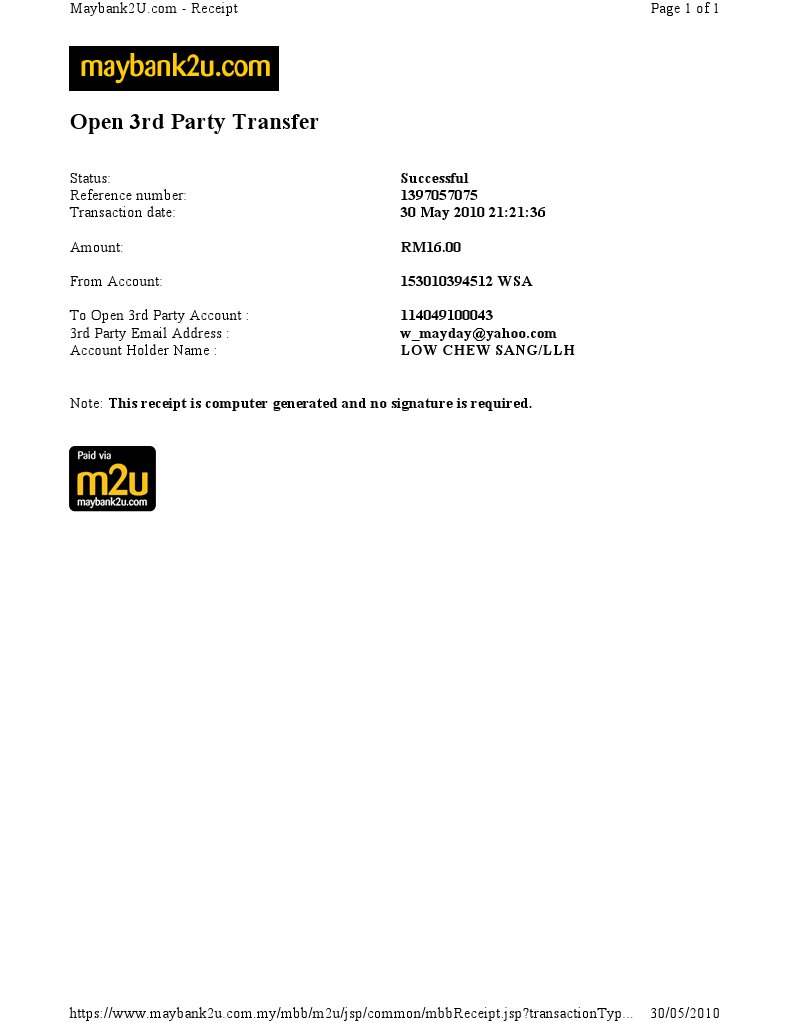 Make Your Payment Via Maybank2u 3rd Party Transfer