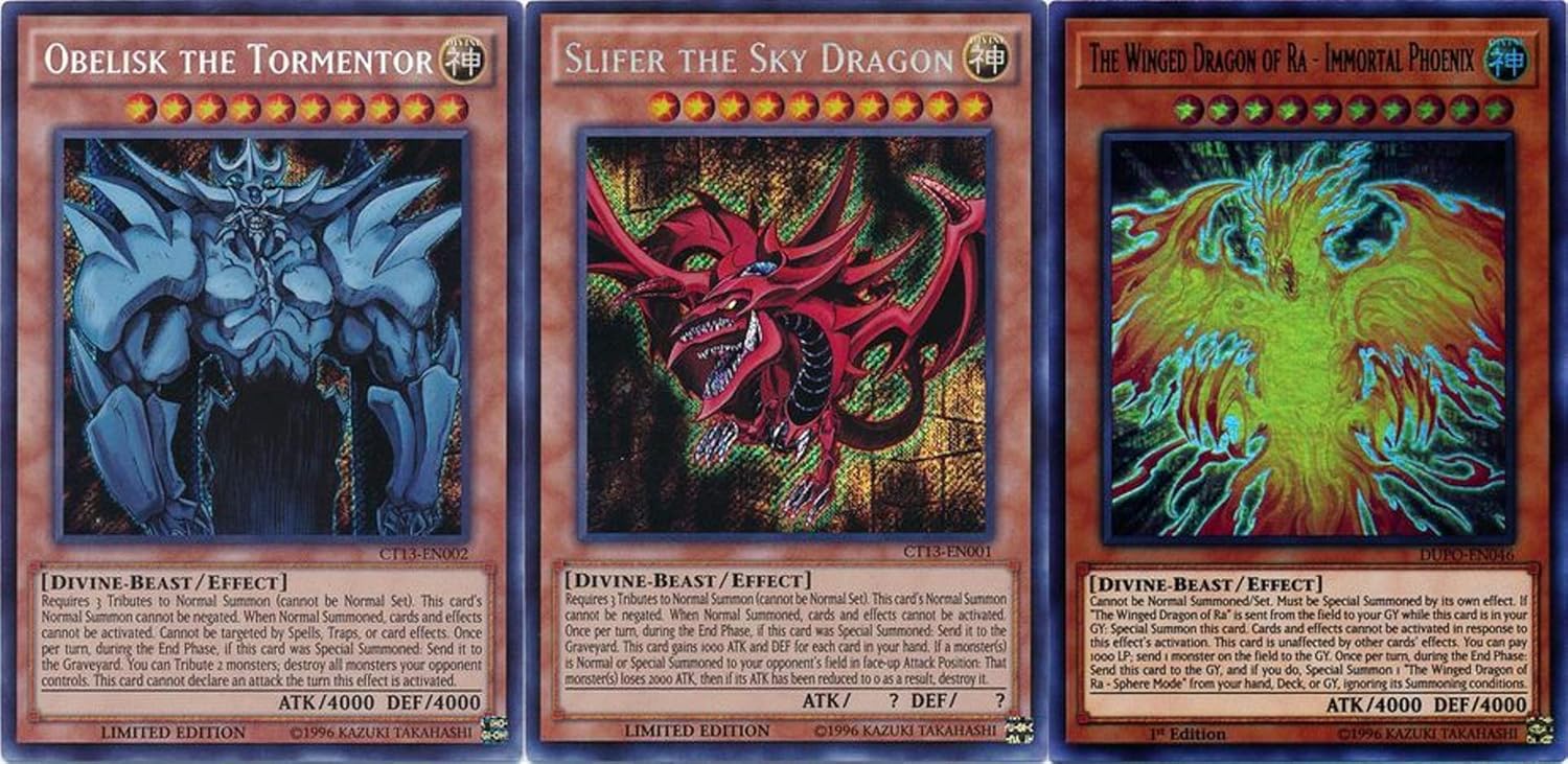 Yugioh All 3 Yu Gi Oh Duel Monster Legendary Egyptian God Cards Obelisk The Tormentor Slifer The Sky Dragon The Winged Dragon Of Ra Immortal Phoenix Yugi Kaiba Marik S God Cards